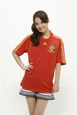 Desgraciadamente, en breve empezará la Eurocopa 2008. Y digo desgraciadamente porque otra vez tendremos inundados periódicos y televisión con el torneo de marras. ¿Y para qué? Para acabar eliminados en cuartos, como siempre, después de jugar como nunca el último partido. Por lo menos me consuelo pensando que una preciosidad como Nozomi Sasaki anima a España desde Japón... ah no, leches, que la moza en cuestión es Euro Queen 2008 y se viste así para promocionar la covertura que el canal WOWOW realizará del campeonato. ¡Qué se quite Manolo el del Bombo y venga la chica en cuestión a arengar (es un decir) a nuestros muchachos!